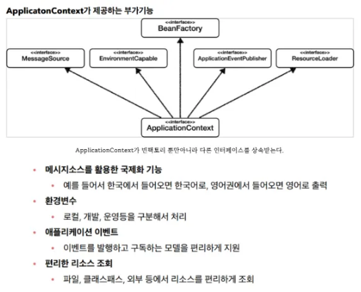 그런데, Bean을 관리하고 검색하는 기능을 BeanFactory가 제공해주는데, ApplicationContext가 상속받아 사용하는 이유는 무엇일까??