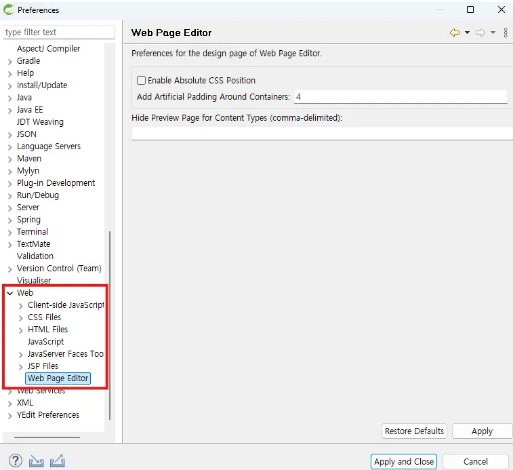 Web 항목들 중의 설정을 UTF-8로 변경해주고 Apply 해준다.